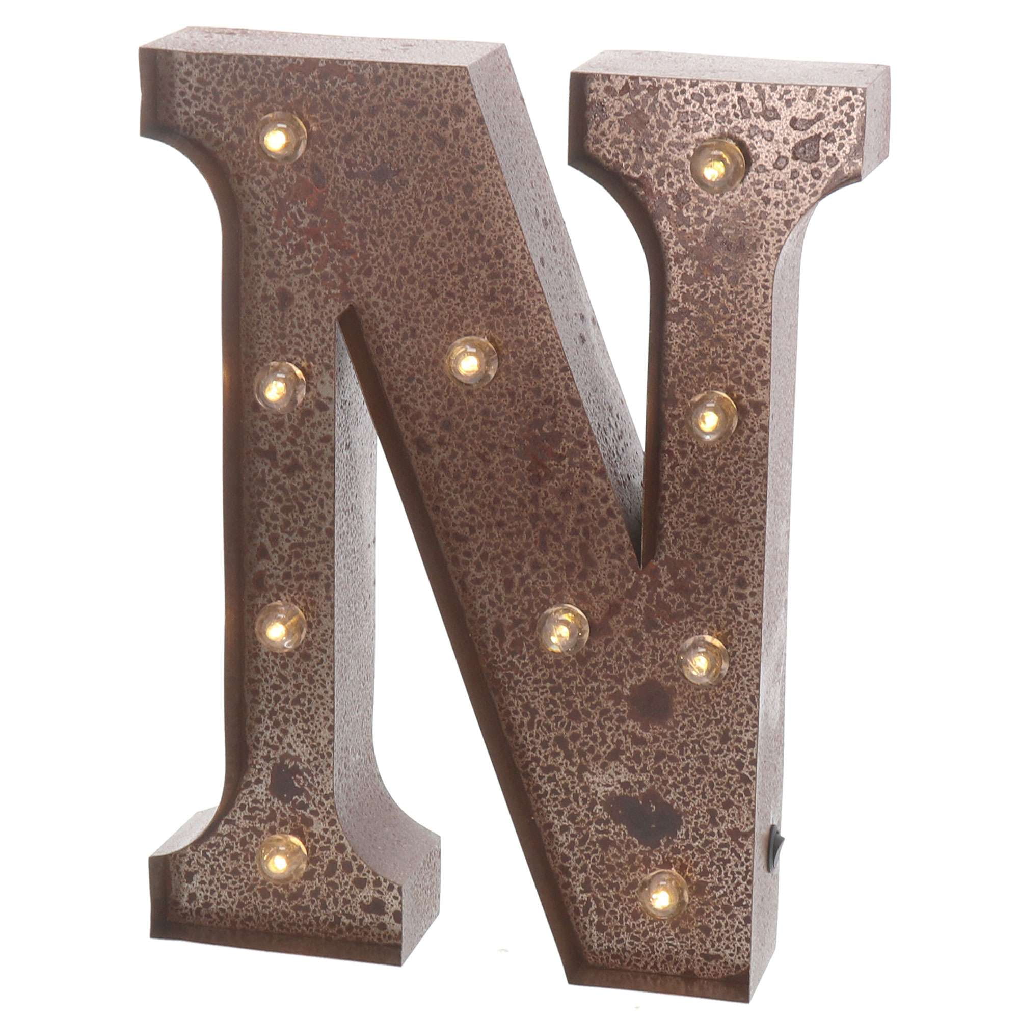 Barnyard Designs Metal Marquee Letter N Light Up Wall Initial Wedding Home And Bar Decoration 12 Rust Walmart Com